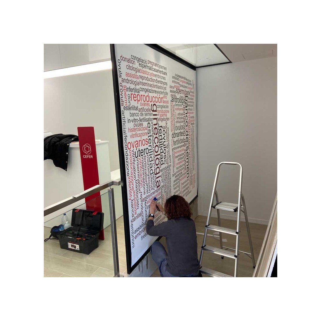 La instalación de un vinilo para pared es un proceso complejo, sobre todo si por el tamaño se ha hecho en dos partes, por eso se aconseja acudir a un instalador de vinilos para pared profesional.